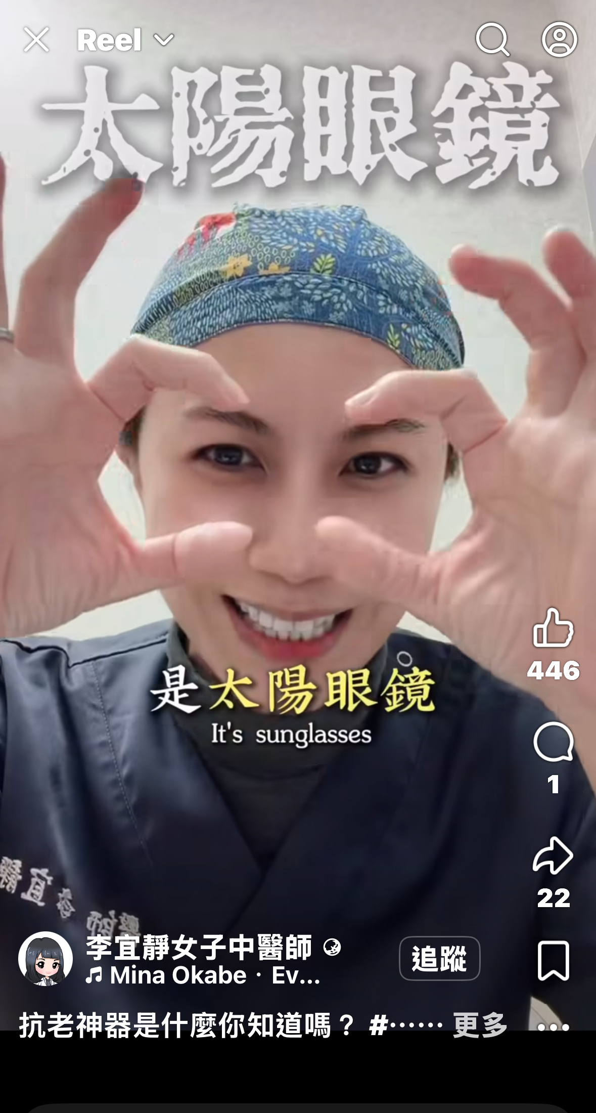 最近李宜靜中醫師分享了一個很有意思、也很有說服力的觀點:她把太陽眼鏡形容成「眼周金鐘罩」。這句話真的很到位。太陽眼鏡不只是造型配件,它其實是一個高效率的物理防護工具,幫你把眼周這個最容易顯老的區域,先擋下第一波傷害。